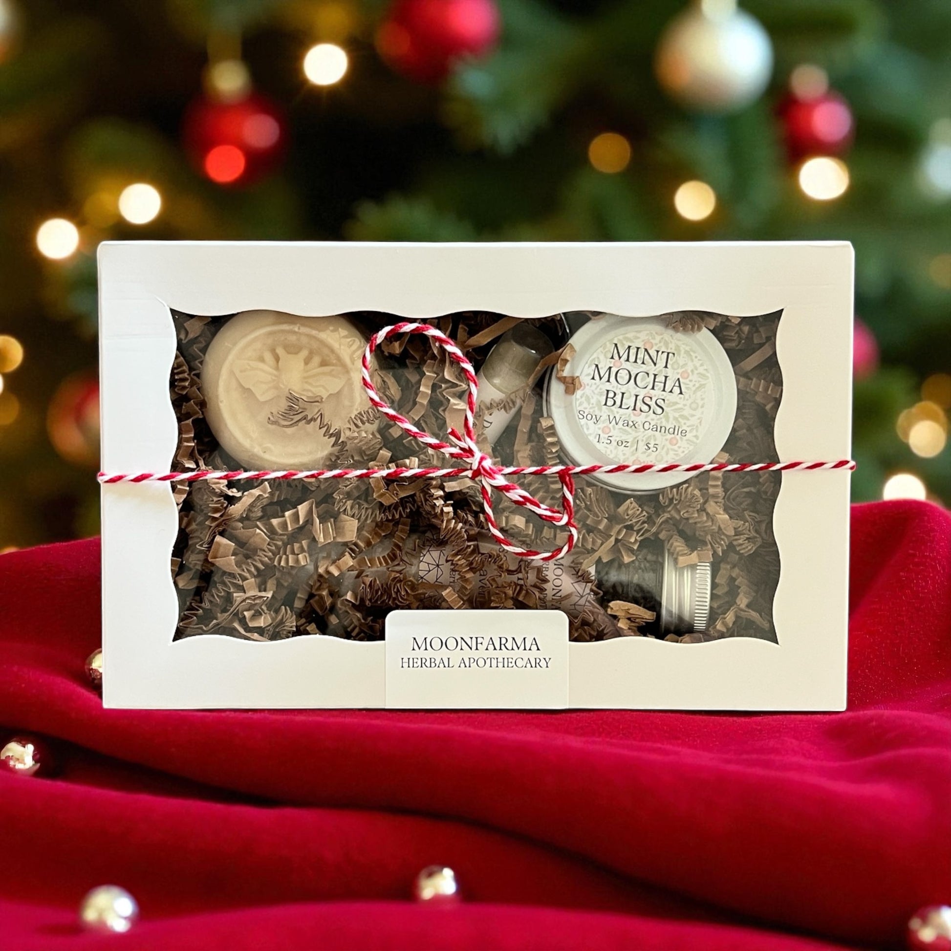 - Little Luxuries Soak Set includes a handmade soap, soothing lip balm, small candle, and mineral-rich Epsom salts.